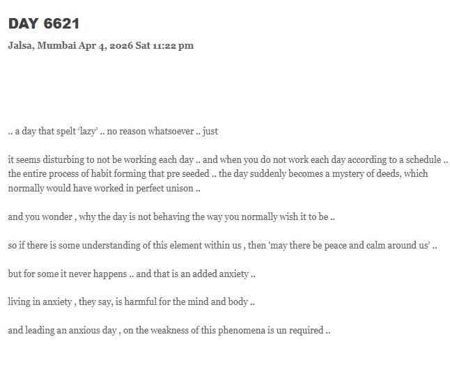 उन्होंने लिखा, "एक ऐसा दिन जो आलसी हो… बिना किसी वजह के… रोज़ काम न करना परेशान करता है… और जब आप तय शेड्यूल के अनुसार काम नहीं करते, तो आदतों का पूरा क्रम बिगड़ जाता है… और दिन अचानक ऐसा लगने लगता है जैसे सब कुछ असामान्य हो गया हो।"