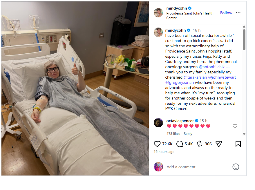 तस्वीर में वह मुस्कुराते हुए और थम्स-अप दिखाती नजर आ रही हैं। अपने पोस्ट में उन्होंने सांता मोनिका स्थित Providence Saint John's Hospital के स्टाफ और अपने ऑन्कोलॉजी सर्जन डॉ. एंटोन बिलचिक का धन्यवाद किया। उन्होंने अपने करीबी दोस्तों— Tara Karsian और Gregory Zarian—के साथ उनके पति जॉन स्टीवर्ट का भी आभार जताया।